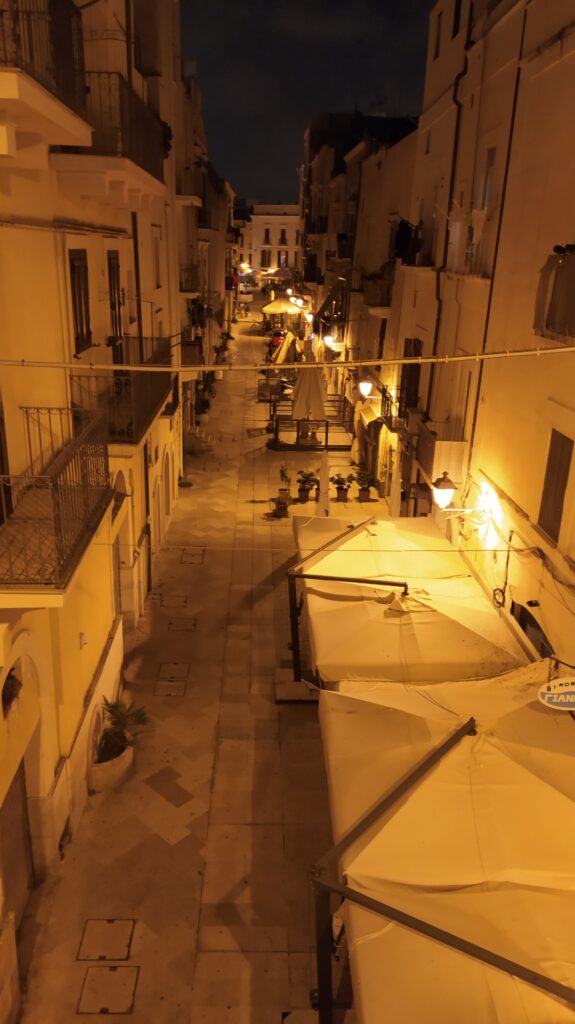 Egy kicsit csaltam hát, és egy kávé, valamint egy kedves helyi olasz úriember társaságában esti sétára indultunk az ó városba, azaz Bari vecchia-ba, ezúton is köszönöm a kedves idegenvezetést. Teljesen más lett a város atmoszférája miután lement a nap, mintha egy másik helyre csöppentem volna.