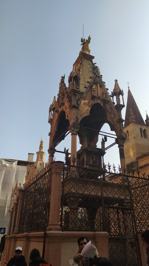 Na, de vissza a valóságba! A teret elhagyva rögtön megragadta a tekintetem egy különleges építmény. A 13-14. századi Verona befolyásos családja, a Scala hercegek családja impozáns gótikus síremlékei kápráztatják el az erre járókat. Mindig elámulok, hogy a régebbi korok emberei sokkal nagyobb türelemmel rendelkeztek, mint ma. (Legalábbis nálam biztosan. :D) A részlet gazdag kovácsolt vaskerítés és maguk a síremlékek, annak teteje hihetetlen részlet gazdag, a többi épület mellettük, már-már jelentéktelenné válik.