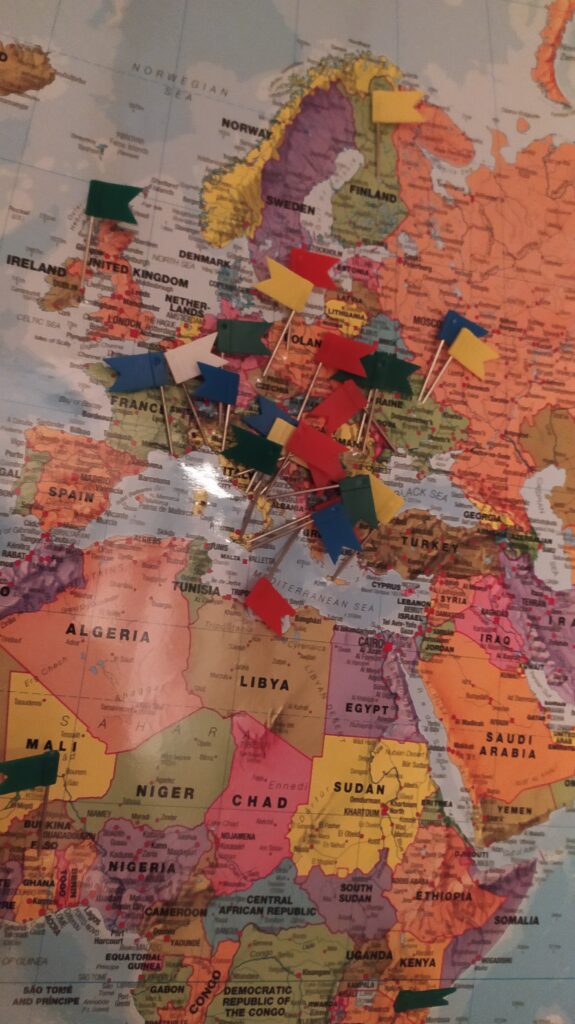 Kb. 20:00 órakor értünk Anconába, a szállásadónk hihetetlenül kedves volt és azonnal imádtam a hely hangulatát. Külön tetszett, hogy az előtérben volt egy hatalmas térkép, amin kis zászlók jelezték, hogy eddig a világ mely pontjairól voltak vendégei a szálláshelynek. Tűztem is egy zászlócskát Magyarországhoz.