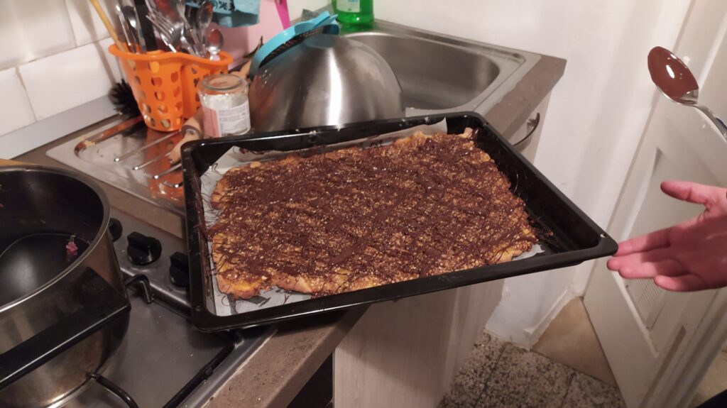 Advent első vasárnapja aztán már igazi karácsonyváró hangulatban telt. Az egyik németországi, szintén zenei szakon tanuló erasmus diáktársam egy nagyszerű ötlettel rukkolt elő: kitalálta, hogy süssünk együtt karácsonyi süteményeket egy kis forralt bor társaságában. Össze is verődtünk hozzá öten. Jó magam almás táskával leptem meg a többieket, de készült egy isteni diós, lekváros, csoki csoda is. Mint kiderült, sokan itt maradunk az ünnepekre, így mind megnyugodtunk, hogy mégsem fog magányosan telni az évnek e csodaszép ünnepe. Megbeszéltük, hogy a vasárnapokat közös, karácsonyváró „szeánszokkal” töltjük a következő hetekben, és karácsonykor sem hagyjuk egymást egyedül.